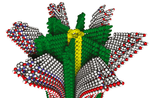 Stupp and his research team also discovered that the covalent polymerization that forms the rigid compartment is “catalyzed” by the supramolecular polymerization, thus yielding much higher molecular weight polymers.