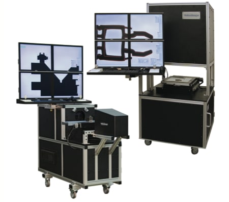 Another shortcoming of traditional optical comparators is their large footprint, due to their internal optical path, which is very long and includes many optical elements such as lenses, prisms, and mirrors. The digital technology of this system requires only one very high-resolution lens and camera assembly, thus its footprint is reduced. Since no overlays are used, storage cabinets previously used to house overlays can be eliminated, resulting in a remarkable amount of free floor space. The system has been designed with casters and can be moved without requiring recalibration. It’s possible to move it to a line when new production starts and then when the process is controlled, relocate the system elsewhere.