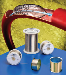 Anomet Products (Shrewsbury, MA) offers custom manufactured clad composite wire in 0.002" to 0.060" O.D. sizes with 2% or more cladding thickness. This wire allows for the combination of one or more precious metals and a core material into a single wire with the desired OEM properties. For example, a radiopaque wire can feature platinum and platinum-iridium, tantalum and tantalum-tungsten, and similar alloys in clad composite with 316LVM stainless steel, nitinol, and MP35N®.