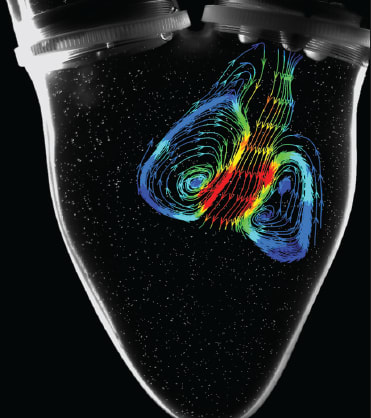 As with any medical device implanted in a patient, it is crucial to ensure that the device successfully passes a stringent set of standards. To improve these standards, Falahatpisheh employs DPIV and computational fluid dynamics (CFD) to assess the flow passing through the valve. Using these techniques, he is able to determine how closely the artificial valves mimic the natural valve and ensure they are compliant with the standard guidelines. At this stage, it is essential to have a proper vortex pattern within the flow through the valve. Otherwise, the flow pattern is not optimized to properly transfer the momentum and energy from the heart chamber to the aorta.