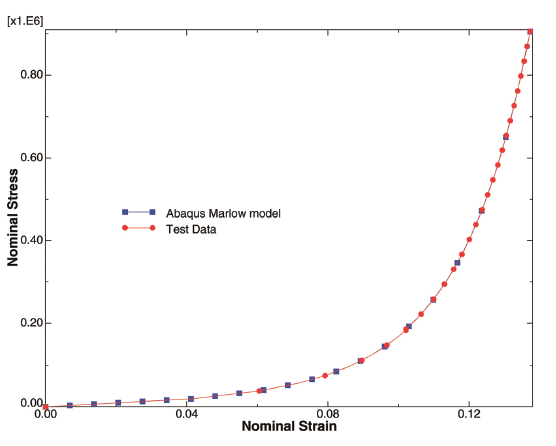 The material for the valve was modeled with the Marlow isotropic hyperelastic representation, the general first-invariant hyperelastic material model in Abaqus. This model can exactly duplicate physical test data from one of several standard modes of loading (uniaxial, biaxial, or planar). It works well in situations where extensive data for one of the test modes is available. For the present analysis, uniaxial tensile test was used (Fig. 1).