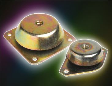 Bell-shaped rubber mountings from Advanced Antivibration Components (New Hyde Park, NY) are designed to dampen shock and vibration for loads up to 887 kgf (1956 lbf). The mountings are made from a combination of natural rubber and styrenebutadiene rubber compound to offer pliability and elasticity. Of the 12 isolators in the series, two have a four-hole mounting and 10 have a two-hole mount configuration. They all feature a welded steel plated nut at the top of the housing. Typical applications include use under controllers, large pumps, fans, motors, compressors, and other medium load equipment. Designed for use in compression, their durometer hardness ranges are 45 and 60±5.