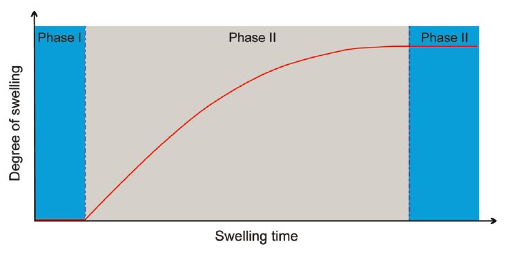 The Oxtex device typically displays a triphasic swelling profile in vivo – see Fig. 1. Phase I represents the biodegradable ‘time switch’ which delays the onset of swelling following implantation for a period of typically two weeks (as dictated by the surgeon).