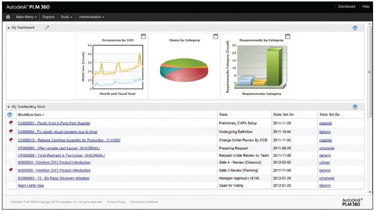 In February 2012, Autodesk introduced Autodesk PLM 360: a complete, cloud-based PLM solution for the entire enterprise that includes engineering, business process management, program and project management, new product introduction, and quality and compliance capabilities.