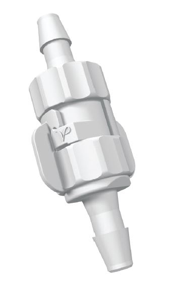 In order to avoid kinks in tubing, component manufacturers have begun to incorporate rotating barbs into their designs. However, when tubing pushes against the shroud of the fitting, the resulting friction can often impede the desired barb rotation. To address this issue, Value Plastics developed a feature called a “tube stop.” This square-shouldered ridge between the base of the barb and the body of the connector prevents the tubing from pushing against the shroud, thereby allowing for full assembly while also providing for unfettered tube-to-fitting orientation.