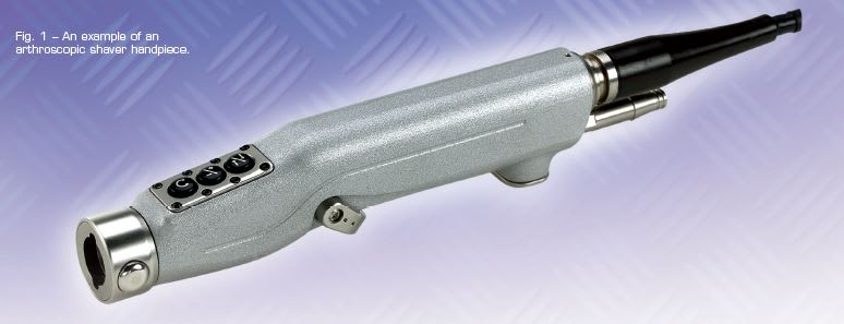 Motor selection greatly influences the form factor of a surgical instrument. A narrow, pencil grip device that requires 40 inch ounces of torque will need a smaller motor to fit with the smaller design. On the other hand, instruments that demand a higher torque, such as a large screw driver or bone saw, require a larger gearbox to house a bigger motor. In addition, higher torque instruments may require a pistol grip handpiece for better control of the instrument. Shown in Figure 1 is an arthroscopic shaver handpiece.