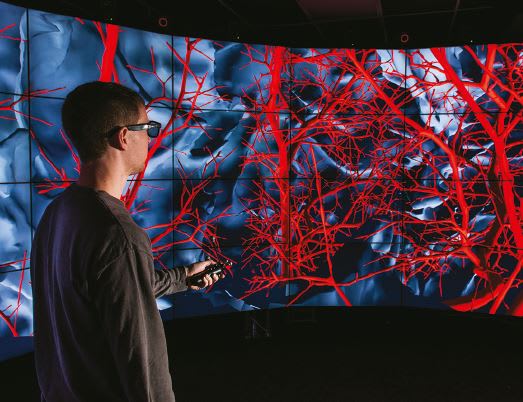 “We had been looking at computer models of a particular patient’s brain for several months,” said Linninger, “but within five minutes of putting the model into the CAVE2, the chief endovascologist said we had connected certain arteries in a way that was inconsistent with anatomy.”