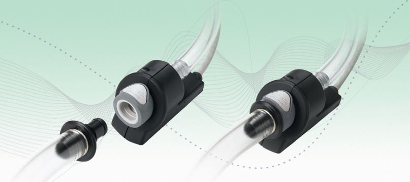 Prevent connection errors in multiple-port systems: Before a physical connection is actually made, the RFID reader reads the tag and tells the control unit what is being connected to each equipment port. If a misconnection is attempted, the control unit can display a warning, trigger an alarm or shut down the equipment until the error is corrected. Thus, the couplings ensure that each line will be connected to the correct port, preventing harm to patients, medical equipment and processes.