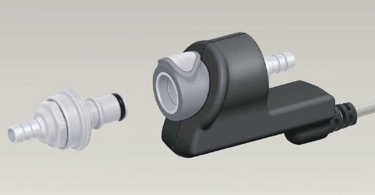 Make media checks: Intelligent quick-disconnect couplings can check to see if fluid used in a medical device is outdated or ensure that its parameters meet job specifications, thereby preventing accidental or intentional use of media that could harm patients or equipment. The couplings can also be used to check media amounts. When one machine performs a number of different tests, for example, an RFID tag can be attached to the line hooked up to the solution bottle for each test. As test doses from a bottle are used, the information is written to that bottle’s tag, allowing the control unit to keep track of how many more tests can be run with the quantity of the solution remaining in the bottle.