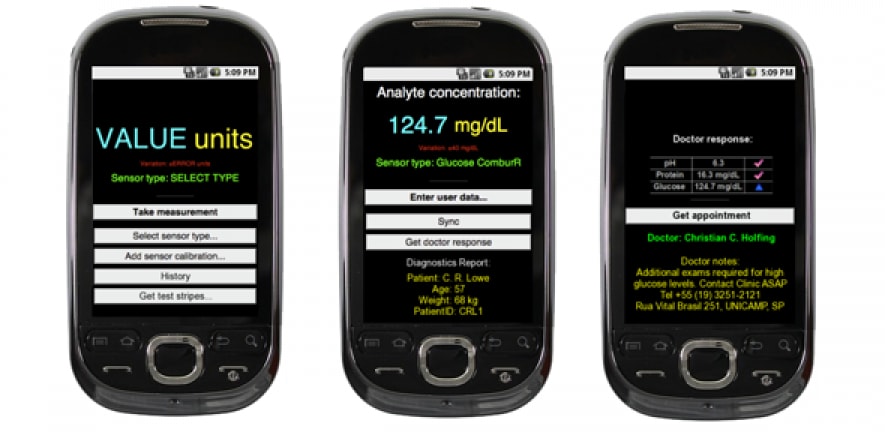 It has been shown to accurately report glucose, protein, and pH concentrations from commercially-available urine test strips without requiring any external hardware, the first time that a mobile phone app has been used in this way in a laboratory setting.