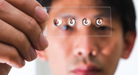 A droplet of clear liquid can bend light, acting as a lens. Using that as a guide, researchers at Australian National University have developed a new process to create very inexpensive, high quality silicone lenses that can be used in a wide range of applications, including tools to detect diseases in the field, scientific research in the lab, and optical lenses and microscopes for education.
