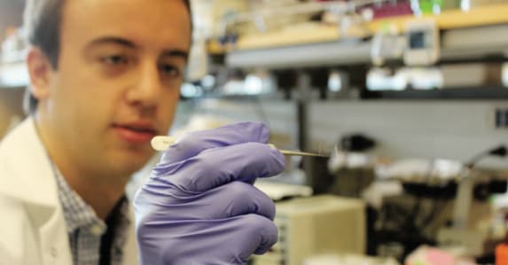 Conte and Desai won an NIH grant that specifically funds promising vascular research that could be translated into a medicinal use. So far, they have shown that the drug reduces vascular scarring in mice and rabbits after they undergo an angioplasty, they also found a reduced number of white cells weeks later, which suggests healing was accelerated. Their next challenge is to get the biolipid drug to the injured area, and to control its release slowly over time.