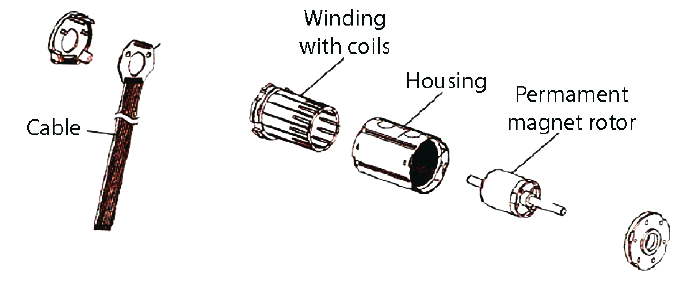 A brushless motor is similar to other motors; the design consists of a housing, windings, permanent magnets, and a shaft. (See Figure 1) Note, all motor technologies have a means for switching power between electrical windings, termed commutation, that result in shaft rotation. The AC motor uses alternating power, and the DC PM motor uses a mechanical commutator. However, brushless is a PM motor that does not incorporate a mechanical commutator in the design. This is the basic concept that makes a brushless motor uniquely different than other motor technologies; it utilizes “electronic commutation”.