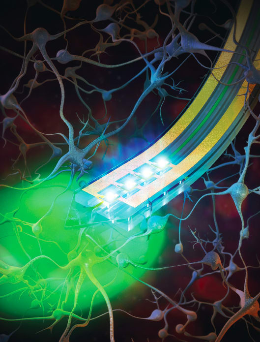 “In the future, it should be possible to manufacture therapeutic drugs that could be activated with light,” said co-principal investigator Michael R. Bruchas, PhD, Associate Professor of Anesthesiology and Neurobiology at Washington University. “With one of these tiny devices implanted, we could theoretically deliver a drug to a specific brain region and activate that drug with light as needed. This approach potentially could deliver therapies that are much more targeted but have fewer side effects.”