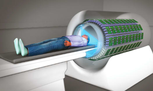 PET scans are widely used to diagnose and track a variety of diseases, including cancer, because they show how organs and tissues are functioning in the body (in contrast to MRI or CT scans, which mostly show anatomy). The EXPLORER project will address the shortcomings of the current scanning technology, which requires more time and exposes the patient to more radiation because scans are done in 20-centimeter segments. (See Figure 1)