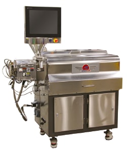 Proper cleaning and maintenance of the extrusion machine in a cGMP environment will help ensure that residues and contamination will not be extruded into the scaffold tubing. This means the extruder should be designed in such a way that allows the screw, barrel, and feed insert of the extruder to be easily removed for unrestricted bare metal cleanouts. In addition, cGMP involves the maximum use of polished stainless steel shrouds with rounded corners to protect product contact surface areas from contamination and for easy cleaning. Figure 2 shows a 12mm micro extruder designed to meet cGMP requirements.