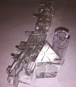 Manufacturing these parts out of glass, with internal prism features that have surface finishes to angstroms (millionths of an inch), would be next to impossible.