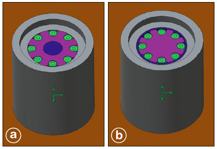 Figures 3a and b show the two different designs of coolers without the lid. The cooling pack was located in the middle for the H500 model, and the cooling pack was located on the outer edge for the H501 model. For both units, the volume of the cooling pack and cooling unit were the same, as were the simulation conditions.