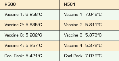Table 1 compares the average temperature of the vaccines and cooling pack after three hours for both designs. After three hours, the vaccines held at the lowest temperature simulation were in design H500. The difference is about 0.1 to 0.2°C. The temperature difference between the cold packs is quite large, at 1.6°C. This is because the cooling pack at H501 is on the outside.
