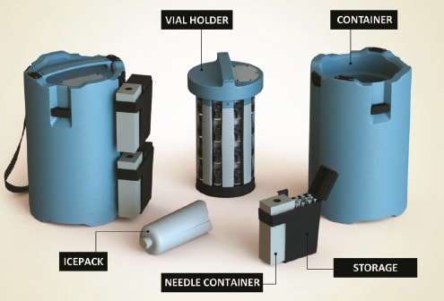 The thermal simulations showed that the vaccines in the H500 vaccine carrier design would stay between 2°C and 8°C longer. The cooling pack and the cooling unit also stayed cooler for longer. In 2015, Grandry won the Belgian James Dyson Award for the device as a solution to a societal problem, and in 2014, the design won the award for packaging. The award aims to inspire and encourage the next generation of design engineers. The newest design of the product, called the COOL-VAX, is a carrier that allows for storage of vaccines for as long as 30 hours at 2 to 8°C using a central ice pack with a water buffer.