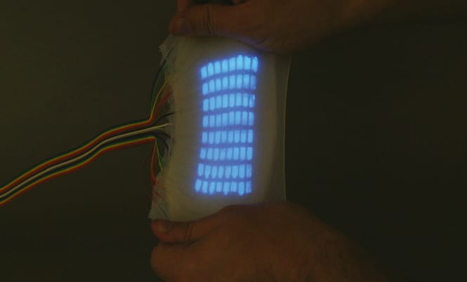 The group, led by Rob Shepherd, Assistant Professor of Mechanical and Aerospace Engineering, has developed an electroluminescent “skin” that can stretch to more than six times its original size while still emitting light. The discovery, they say, could lead to significant advances in healthcare, transportation, electronic communication, and other areas.