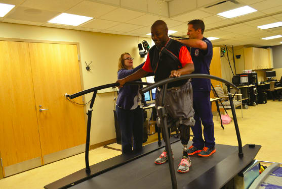 VA research scientist and Assistant Professor Alena Grabowski is also doing groundbreaking work in her Applied Biomechanics Lab at the University of Colorado, Boulder. Here, a 10-camera Vicon motion capture system operates in a full 3D environment.