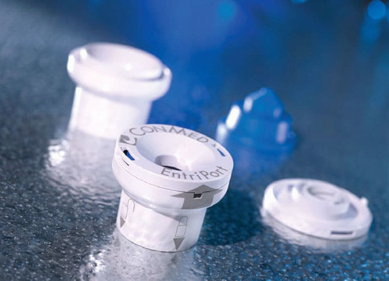Ultrasonic welds are widely used to join thermoformed plastic assemblies in medical devices because they eliminate the need for chemical solvents and adhesives, which can raise biocompatibility concerns, and they eliminate the need for mechanical fasteners. The ultrasonic welding process integrates easily into high-volume part production and automation because weld cycles are so fast — typically less than two seconds — and no consumables are required. Minimally invasive surgical instruments, including catheters, cannulas, luers, and trocars, often utilize ultrasonic joining with great success. For example, components that make up the sealing mechanism of a surgical trocar (see Figure 2) are ultrasonically welded into one sub-assembly of the finished product.
