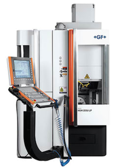 GF Machining Solutions, Lincolnshire, IL, offers a linear performance milling machine designed for high-performance medical machining applications. Available in threeand five-axis versions, the Mikron HSM 200U LP is particularly suitable for machining small, complex components, including medical implants and other highly detailed parts. It can produce workpieces via true five-axis simultaneous high-speed machining. It features linear motor technology in the main machine axes and optimized direct-drive motors for the B and C axes that result in high precision and part surface finishes as fine as Ra 0.05 μm.