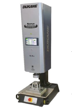 Dukane, St. Charles, IL, has introduced the next generation of spin welders for welding plastic assemblies with circular weld joints. The ServoWeldTM Plus with Melt-Match® technology is an all-electric press system using two servomotors to provide precise control and accuracy. It features a technologically advanced, touch-enabled human machine interface with an intuitive menu structure to control and monitor the welding process. The spin axis has an orientation resolution of 0.1 degree, while the vertical axis has a positioning resolution of 0.01 mm (0.0004 in.) and a force capacity of 2000 N (450 lb).