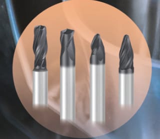 Emuge Corp., West Boylston, MA, has introduced new end mills designed to enable substantially more material removal with fewer passes in five-axis machining. The circle-segment cutters are ideal for machining turbine blades, impellers, and blisks, and for use in mold making applications. They feature unique forms with large radii in the cutting area of the mills, allowing a larger axial depth of cut during prefinishing and finishing operations. The solid-carbide end mills are offered in four geometries: barrel-shaped, oval form, taper form, and lens shape. Oval and taper form mills are ideal for curved shapes such as blades or straight-walled pockets, freely engaging more of the cutting edge. Barrel design mills provide highly effective flank milling to the sides of spiral grooves and similar applications, while lens shape mills are best for narrow channels or in lands on molds.