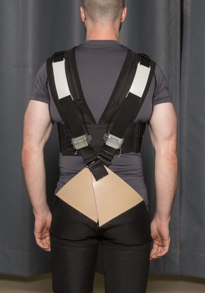 Using motion capture, force plates and electromyography, they demonstrated that the device reduced activity in the lower back extensor muscles by an average of 15–45 percent for each task.
