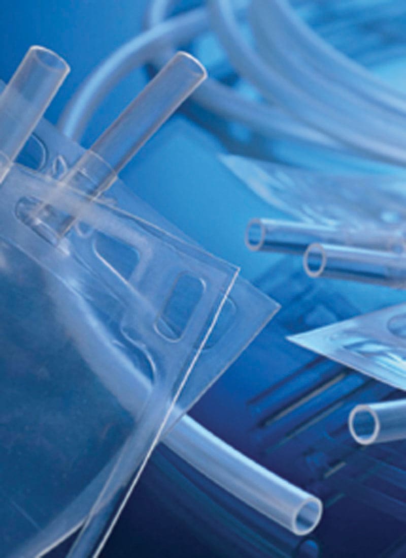 For infusion bags, the first step was the use of PVC films, tubing, and connectors containing plasticizers. Since the early 1990s, there has been an intensive search for alternative materials free of plasticizers and chlorine. For films, the industry quickly achieved adequate levels of quality that had already proven their value in the food industry. The films in question were multilayer films made from polypropylene (PP) or polyethylene/bonding agent/polyester that comply with the requirements for transparency and sterilizability with water vapor at 250 °F (121 °C).