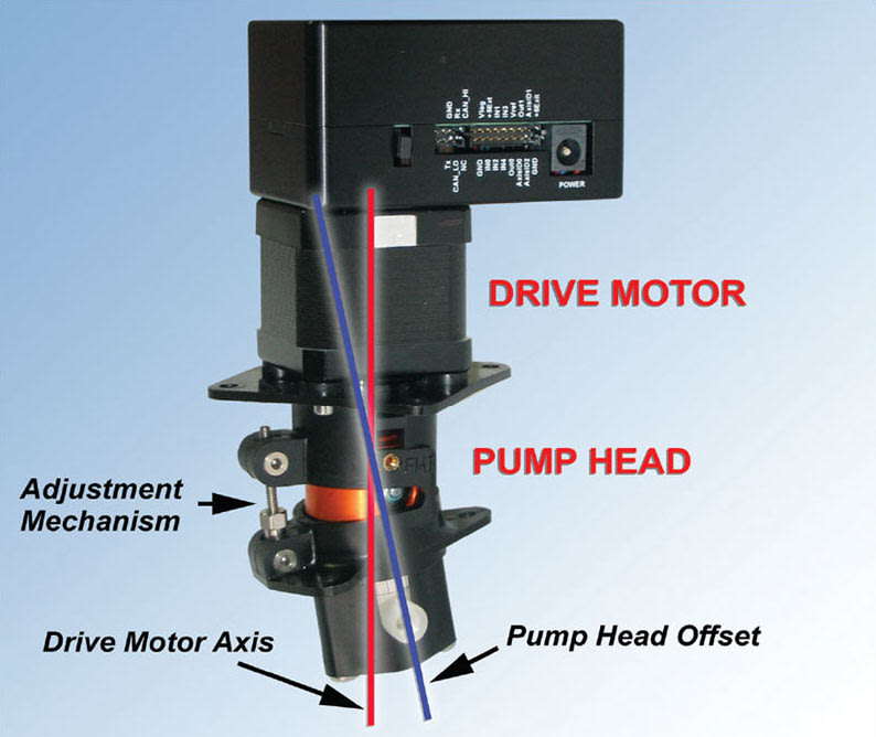 Typically for OEM instrumentation applications, pump head displacement is calibrated and locked in place at the factory to the customer’s specific requirements. This provides precision factory calibration while also saving time during system assembly. However, if customers prefer to calibrate the pump at their factory or in the field, or if multiple dispense volumes require varying calibration changes, pumps to meet these requirements are readily available as well.