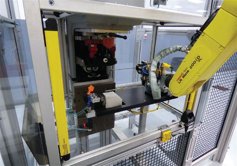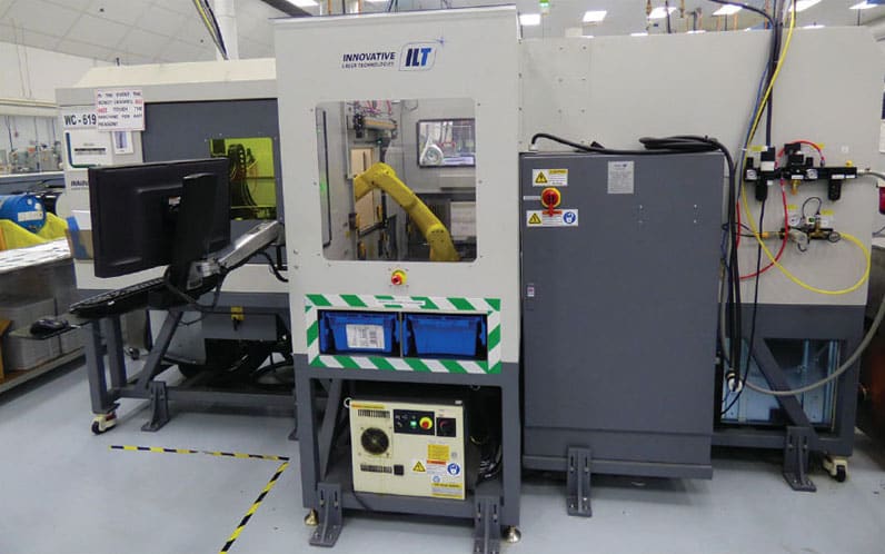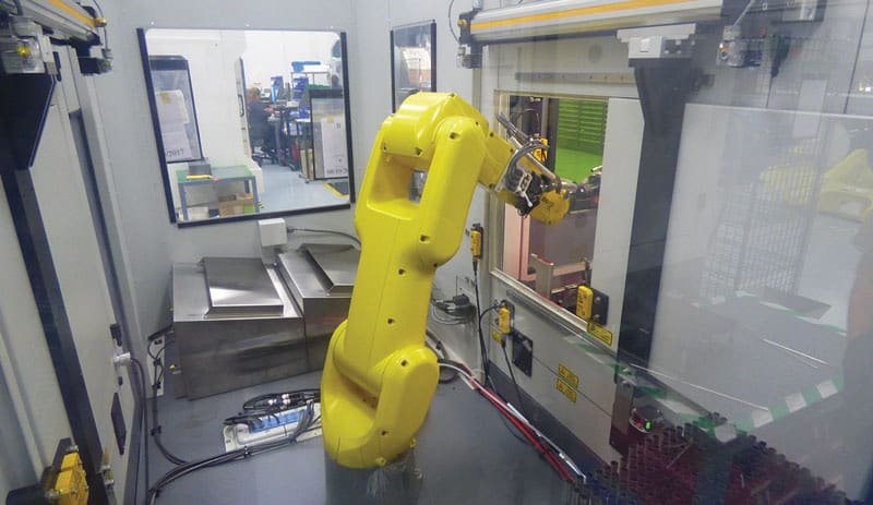 By incorporating a robotic arm with two laser-cutting machines, the system virtually takes operator labor — including handling, processing, and inspection — out of the process. Removing these manual processes translates directly into reduced manufacturing costs.