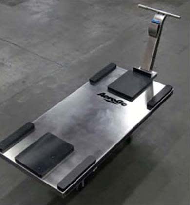 A stainless-steel, air-powered, low-profile pallet from AeroGo, Seattle, WA, makes it possible for one operator to lift and move up to 31,000 lb. Built of corrosion-proof stainless steel, with USDA-approved lifting pads, the pallet mover is suitable for medical, pharmaceutical, cleanroom, or corrosive environments. The layout of the pallet includes a low-profile drive and ergonomic, modular J-handle with integrated controls. With a profile height under 5 in. from the floor, combined with the control of ~450 lb of drawbar, the design offers a very high capacity in a very compact package. Polymer lifting pads control the transfer of forces and therefore load path on the pallet structure.