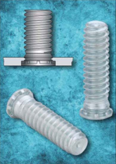 Self-clinching flush-head studs from PennEngineering, Danboro, PA, feature a unique low-displacement head design, enabling close-to-edge installation of the fasteners in thin metal sheets. The PEM®, FHL™, and FHLS™ studs provide ideal attachment solutions compared with weld studs and other conventional hardware by promoting easier and cleaner installation with fewer production steps and more reliable performance in service. Since the studs install permanently, they never loosen or fall out over time. Their low-displacement head design prevents any bulging of the edge of the sheet where the studs are mounted. With the head installed flush in the sheet, the studs will not protrude or otherwise interfere with assemblies.