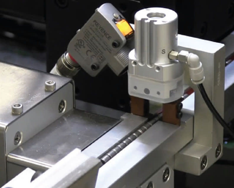 The system detects a programmed frequency of parts needed and separates the number of parts processed for data collection. The machine then uses a smart gripper in a “pinch” action to meter the parts into the machine. Data is instantly fed back to the machine’s control system for collection and size compensation.