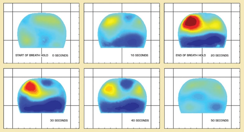 The investigators captured a series of images during a breath hold of at least 15 seconds, which inhibited the backflow of blood through the veins but not the inflow through the arteries. Additional images were captured after the breath was released, allowing the blood to flow out of the veins in the breasts. Images were obtained before and two weeks after starting chemotherapy.