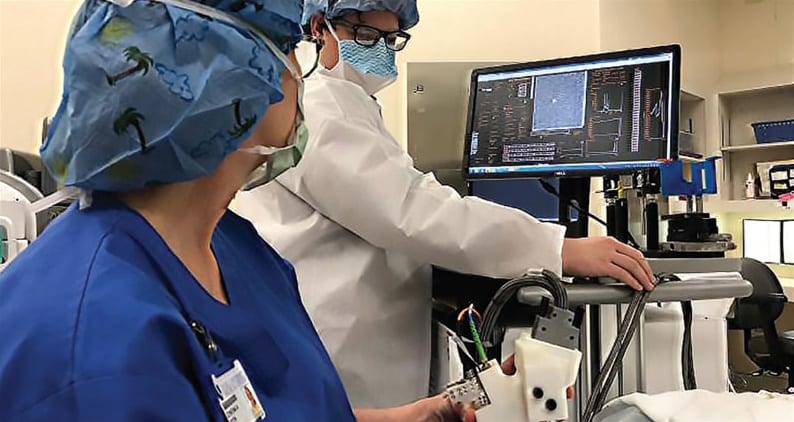 The Duke researchers transformed the AOSLO into a handheld probe by improving its optical, signal processing and mechanical designs. This included development of a new algorithm that replaces the traditional AOSLO's large wavefront sensing system, an optical component that can detect light distortion caused by the eye. The study appears August 23 in the journal Optica.