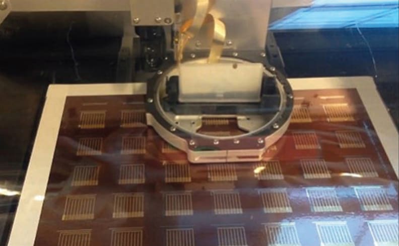 The biosensor chip was partially constructed using an inkjet printer, which layers nanoparticle inks onto a plastic surface to create an array of electrodes. The printed biosensor chip was deposited into a prefabricated microfluidic device, which directs fluids to flow in a controlled manner.