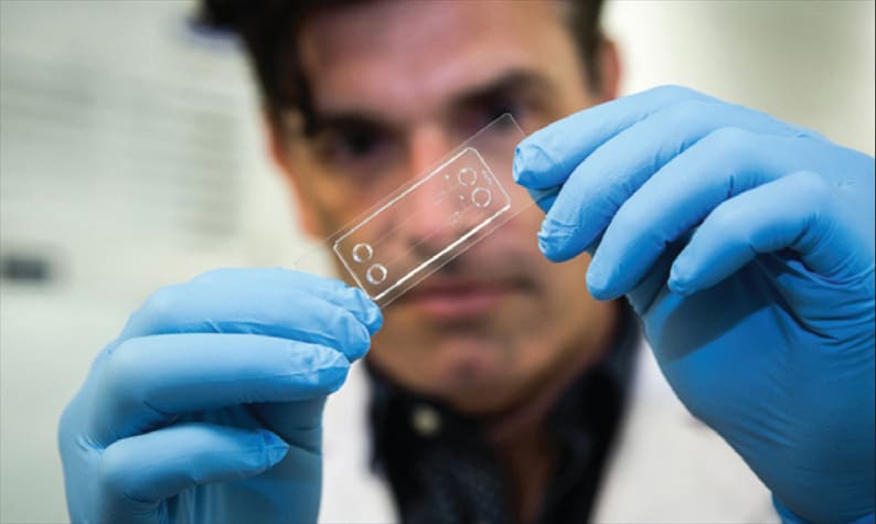 Their aim? To miniaturize the complex blood-handling features of a pathology lab onto a tiny chip, the size of a postage stamp.