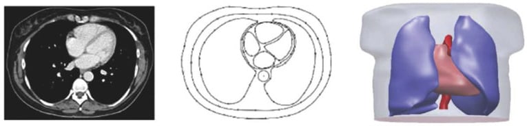 Over the years, STMicroelectronics has developed many healthcare applications. In one prototype project, a patch was designed to measure the bioimpedance of an organ, such as the heart, inside the human body (see Figure 2). Working from medical imaging of human organs, researchers created a 3D model (see Figure 3) to run an AC/DC simulation in the frequency domain (see Figure 4) and assess the effect of the electrode shape and position on the measured physiological parameters.