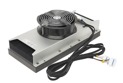 Laird Thermal Systems, Durham, NC, has developed a large capacity direct-to-air thermoelectric assembly (TEA). Designed for refrigeration of medical chambers and analytical storage compartments, the DA-280 TEA is an alternative to smaller compressor-based systems. Offering more than 280 W of cooling power, it operates on 24 VDC and uses custom thermoelectric (Peltier) modules to maximize cooling capacity and optimize efficiency. The unit uses premium-grade fans with low noise and has superior barrier protection to keep moisture from penetrating inside the unit.