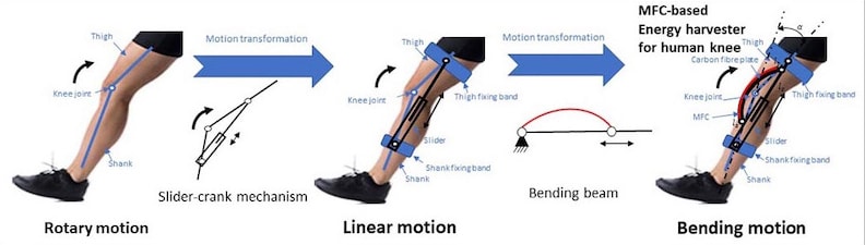 The researchers used a special smart macrofiber material, which generates energy from any sort of bending it experiences, to create a slider-crank mechanism. The authors chose to attach the device to the knee due to the knee joint’s large range of motion compared to most other human joints.