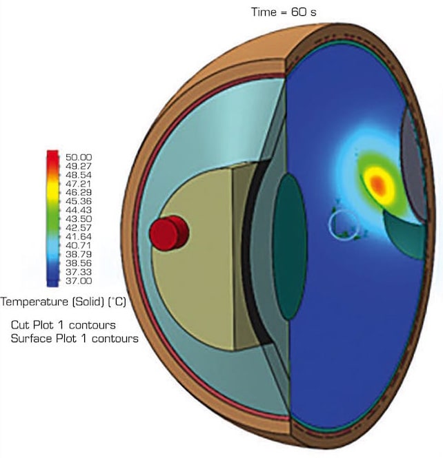 This article describes a numerical simulation study conducted using computational fluid dynamics (CFD) simulation software to make the model and run the tests. The goal was to correctly evaluate the radiation power required for treatment to help improve individual patient outcomes and pave the way for new methods of treatments. To verify the results, the team at Mentor and S. Fyodorov Eye Microsurgery Federal State Institution compared the computational simulations to actual treatment thermometry data.