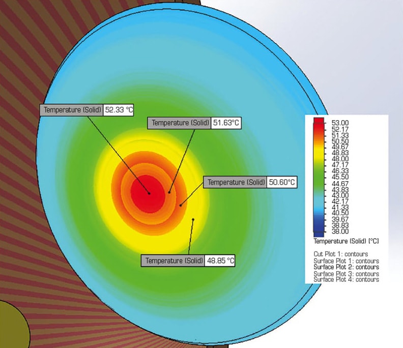 The team wanted to analyze one of the therapy methods used to treat tumors growing in the choroid, which is the circulatory eye system that provides blood to the retina of the human eye. They used the Siemens CFD tool FloEFD™ to conduct a numerical simulation of the transpupillary laser thermotherapy method of treatment. Currently, there are three main organ-preserving methods of treatment such tumors: brachytherapy, laser thermotherapy, and stereotactic radiosurgery (gamma-knife).