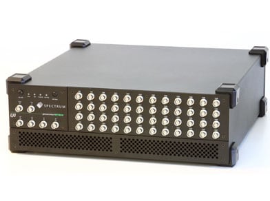 Spectrum Instrumentation, Grosshansdorf, Germany, has launched a line of arbitrary waveform generators that offer 24–48 synchronous channels in a single rack unit. Ideal for multi-channel automated testing applications, the eight different variants achieve full remote control through a simple Ethernet connection to any PC or local area network (LAN). The units feature 16 bit digital-to-analog converter technology and combine this with low-noise flexible outputs, allowing them to generate almost any test signal in the DC to 60 MHz frequency range.