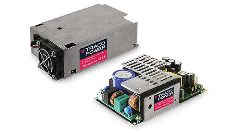 Traco Power, for example, offers both AC/DC and DC/DC solutions for medical applications, all of which fulfill the 2 × MOPP requirement. Compliant with the EMC requirements of IEC 60601-1-2 (4th edition), they are suitable for all patient-connected, AP medical devices (BF compliant). The AC/DC products range from small 5W PCB-mounting modules, to a range of mid-power open frame designs, and enclosed power supplies offering power levels of up to 450 W. The company’s medically approved DC/DC converters offer 5000 VAC rms of input-output isolation, rated for a 250 VAC rms working voltage. This, along with leakage currents below 2 μA, make them ideal choices for use in conjunction with non-approved AC/DC PSUs in safety-critical medical applications.