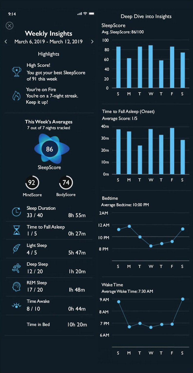 Did you get a high sleep score from SleepScore Labs? Sleep apnea is a major problem in the United States. To help people sleep better and develop good sleep habits, SleepScore offers a single app to do just that. The process starts with using a smartphone’s microphone and speaker to track and measure the breathing rate and body movement of the user. As Figure 8 illustrates, the user’s sleep pattern is displayed. SleepScore then performs an in-depth analysis of every stage of the sleep cycle, giving insights into the sleep environment. Next, the app displays the results of the sleep pattern (see Figure 9) and issues a score that can be compared with thousands of others who have a similar age and gender profile. The solutions, which are then recommended, include, for example, the best time to drink the final cup of coffee for the day. Additionally, SleepScore works with a number of partners to provide devices for improved sleep, such as sleep sound machines, pillows with music, and scented devices.