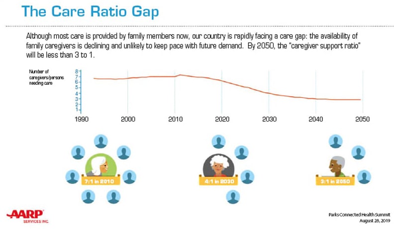 Additional challenges include the future care ratio gap as pointed out by AARP. When the care supply cannot meet the demand, there is a problem. Care costs will go up. Using technology and having an infrastructure to support seniors not only make sense but are critically important financially (see Figure 1).